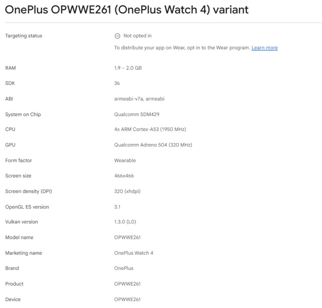 Ne yazık ki, önceki öneriler onePlus'ın donanımını eski̇ saat 3(Amazon'da şu an 249,99 dolar). Örneğin, Google Play Console'da Watch 4'ün 2 GB RAM ile Qualcomm'un Snapdragon W5 Gen 1 daha yeni yonga seti yerine Snapdragon Wear Elite.