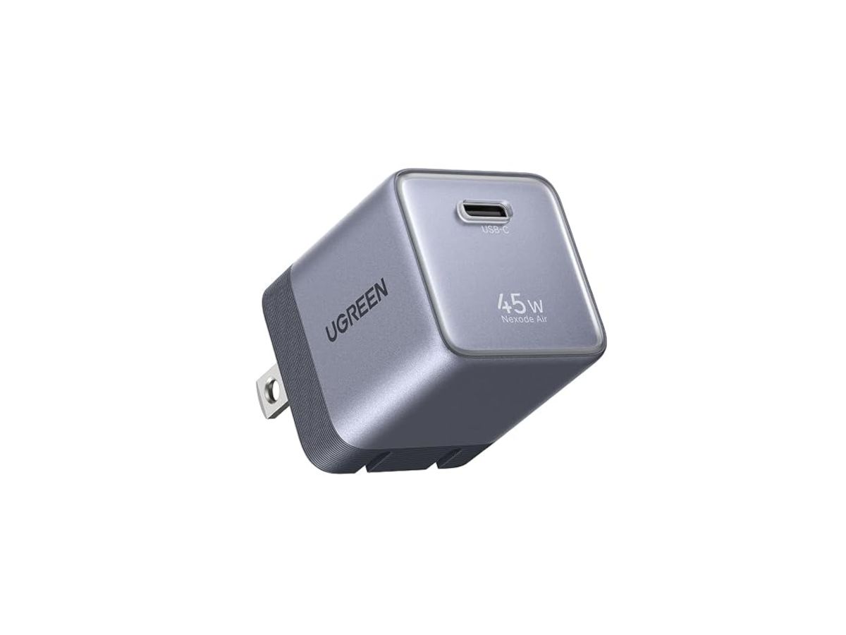 Ugreen'in Nexode Air 45W GaN Şarj Cihazı, tek bir USB-C bağlantı noktasına sahiptir ve bu bağlantı noktası bir USB-C'yi şarj etmek için kullanılabilir iPhone 17 70'e veya bir iPad (A16) yarım saat içinde %35'e çıkarır. Bu model PD, PPS, QC ve diğer hızlı şarj protokollerini desteklemektedir. ThermalGuard sıcaklık izleme aracı ve diğer güvenlik özelliklerine sahiptir ve GaN teknolojisinin %93 enerji verimliliği sunduğu söylenmektedir. Küçük aksesuar 1.21 x 1.21 x 1.42 inç (~30.7 x 30.7 x 30.1 mm) boyutlarında ve katlanabilir pimleri kompakt şarj cihazının saklanmasını ve taşınmasını daha da kolaylaştırıyor.
