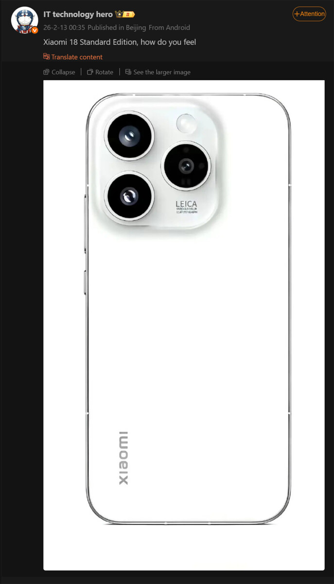 Xiaomi 18 Pro ve Xiaomi 18 Pro Max rapor edilir daha güçlü Snapdragon 8 Elite Gen 6 Pro için de çekişme içinde olacak. Buna karşın, Xiaomi 18'in Qualcomm'un standart Snapdragon 8 Elite Gen 6'sını kullanan üç modelden yalnızca biri olacağı söyleniyor. Sadece bu da değil, yaygın olarak kabul gören bir Weibo kullanıcısına ait yeni bir söylenti, Xiaomi 18'in de selefinin tasarımından ayrılacağını öne sürüyor daha büyük bir ekran ile.
