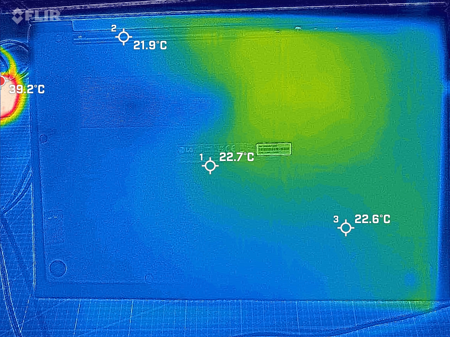 | Idle Upper Side * (°C) | 23.3 | 27.1 -16% | 26.8 -15% | 31 -33% | 26 -12% | 28.3 -21% | 22 6% |