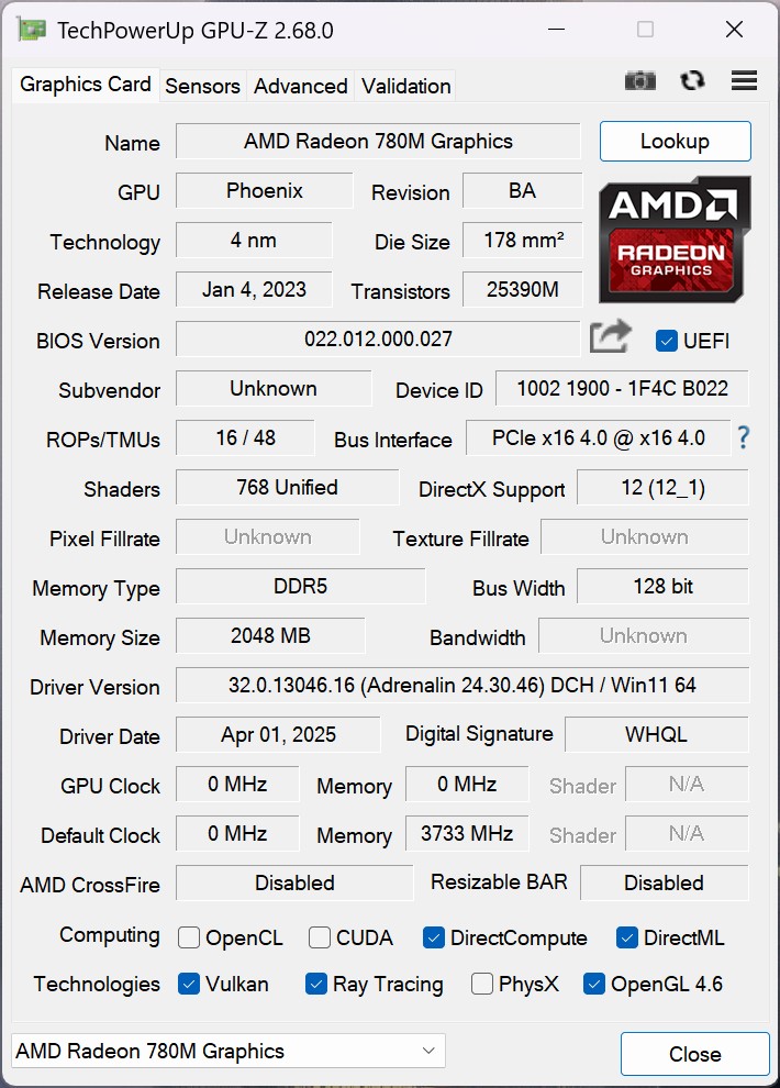 AMD Ryzen 7 255'li Minisforum AI X1, diğer birçok modelde zaten kullanılan ve bu nedenle benzer performans sunan entegre bir Radeon grafik birimine güveniyor. Intel'in yeni Arc Graphics 140T'si bazı senaryolarda daha iyi performans sunabilir, ancak AMD'nin Radeon 780M'si genellikle karşılaştırıldığında daha iyi performans gösterir. Ancak, Nvidia GeForce RTX 4050 dizüstü bilgisayar gibi özel GPU'ların performansına yaklaşamaz.