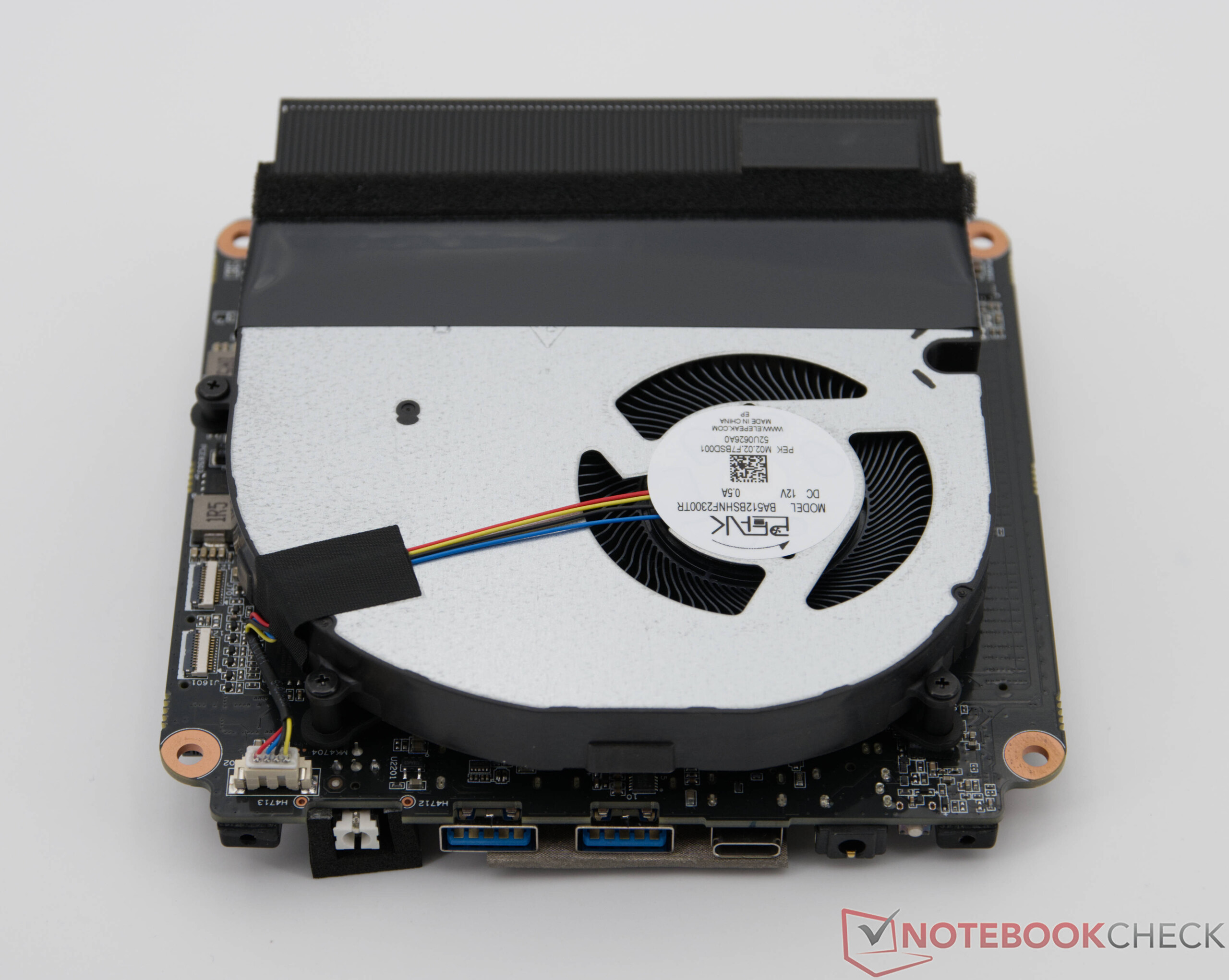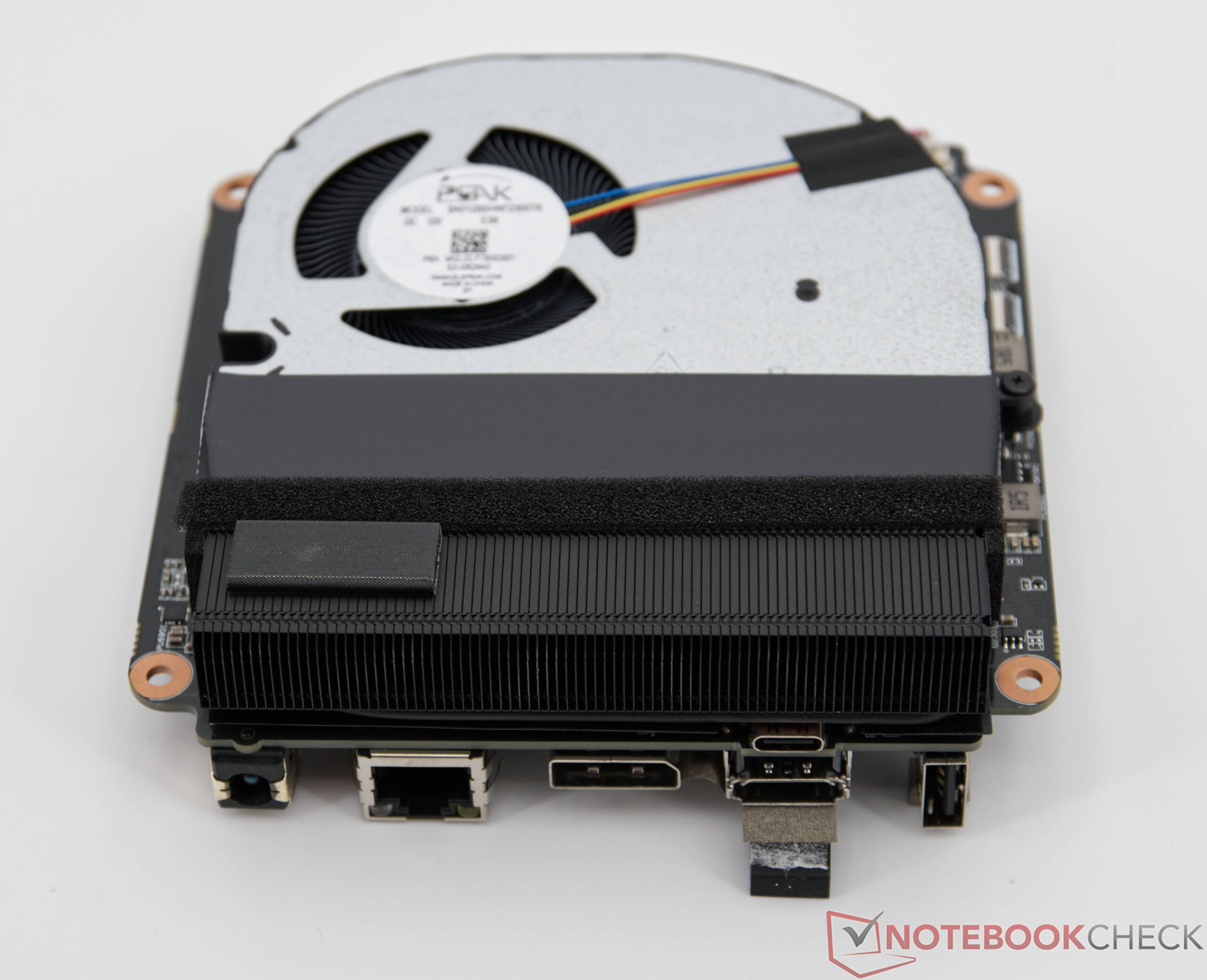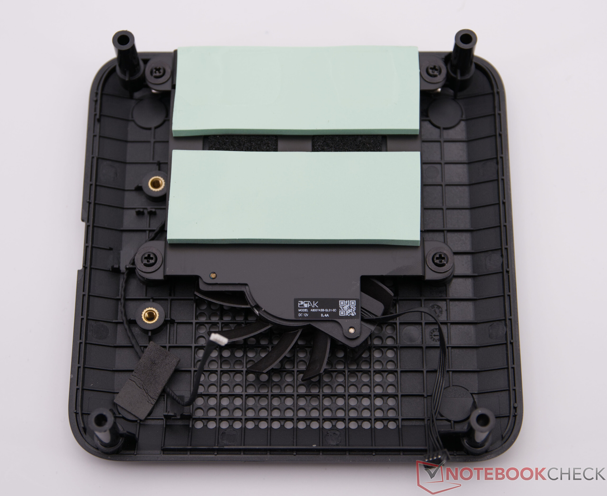 Minisforum AI X1, dahili bileşenlere yeterli temiz hava sağlayan verimli bir soğutma sistemine dayanır. Fan, yüksek yük altında bile hoş bir şekilde ölçülü kalır ve stres testinde yalnızca yaklaşık 38 dB(A)'ya ulaşır. Mini PC boştayken tamamen sessiz olmasa da, genel olarak sessiz ve göze batmıyor.