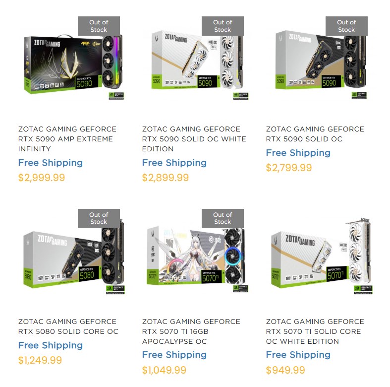 Ancak, bu iptallerden kısa bir süre sonra ZOTAC, GPU'larını önemli ölçüde daha yüksek fiyatlarla yeniden satışa sundu. Raporlar, şirketin tüm ürünlerinde fiyatları artırdığını iddia ediyor RTX 5090 yüzlerce dolar arttı. Bazı modellerin yaklaşık 2.299 dolardan 2.799 dolara, 2.399 dolardan 2.899 dolara ve 2.449 dolardan yaklaşık 2.999 dolara yükseldiği bildirildi. Bu RTX 5080 hatta 250 dolar civarında bir sıçrama gördü.