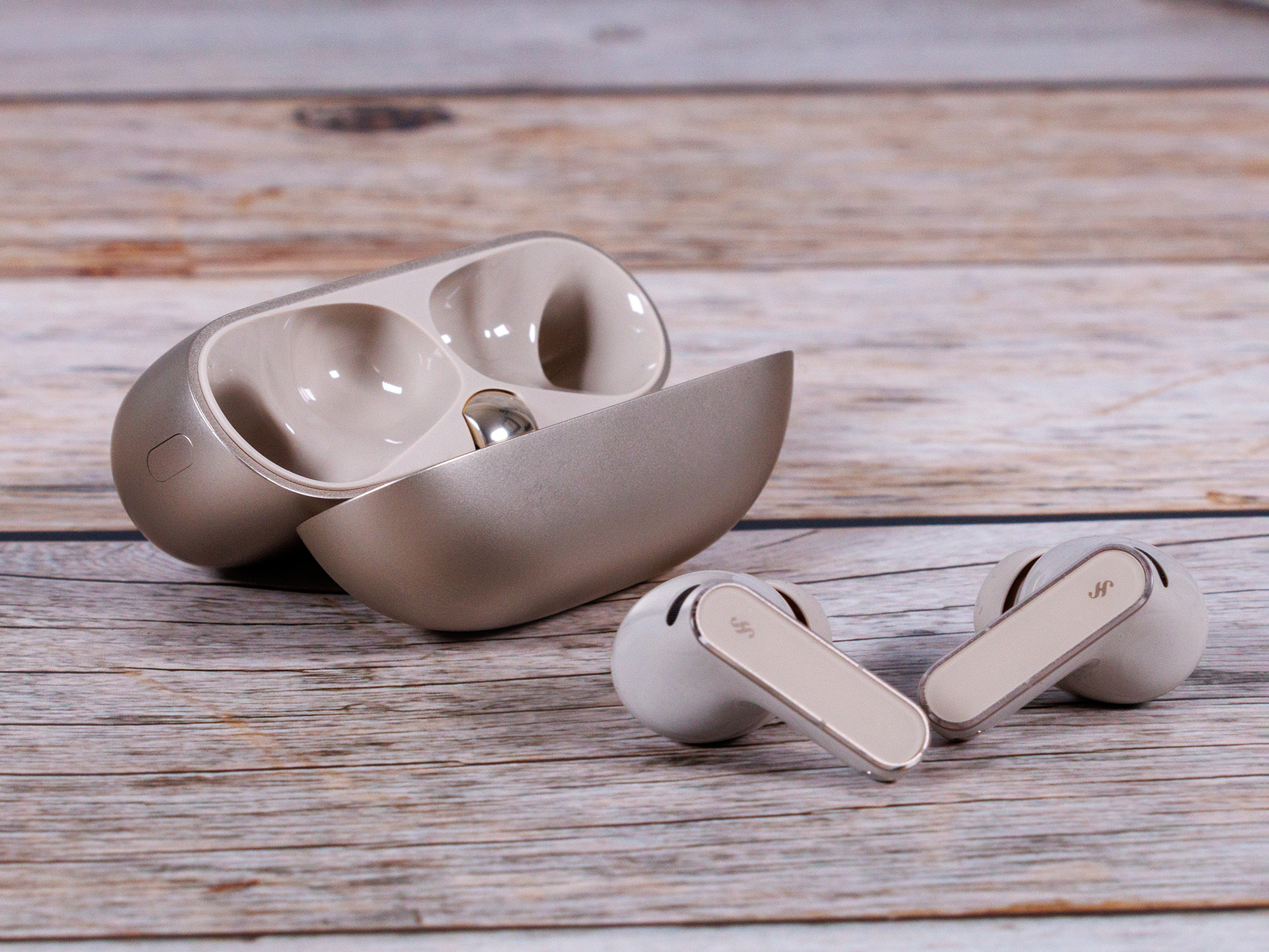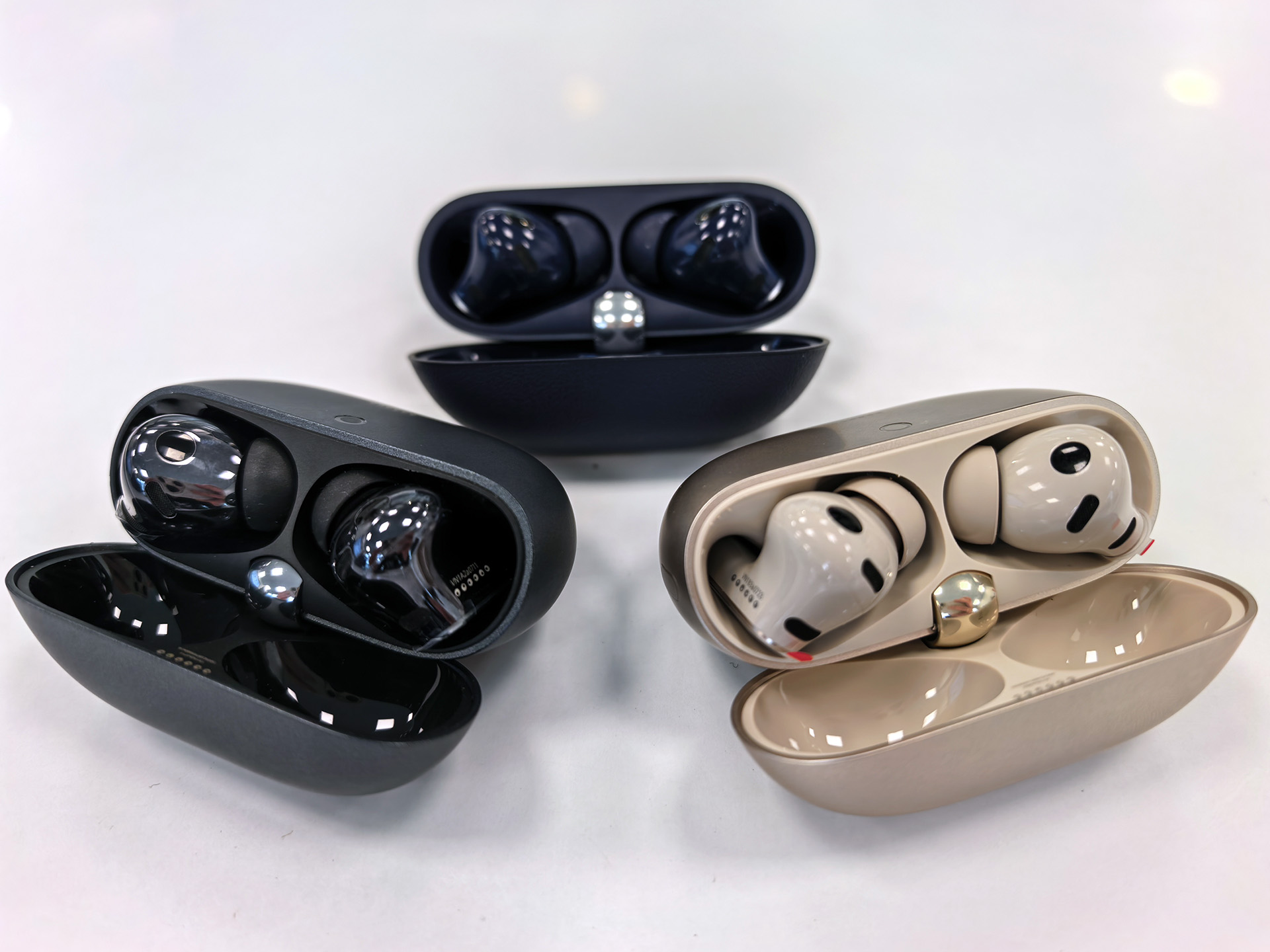Huawei FreeBuds Pro 5, öncekilere göre biraz daha kompakt ve yuvarlak hatlara sahip ve kulaklıkların ağırlığı 0,3 gram daha az. Mavi versiyonu tercih etmediğiniz sürece şarj kutusu da 4 gram daha hafiftir, bu durumda sadece 1 gram daha hafiftir. Renk seçenekleri arasında beyaz, siyah, kum altın (inceleme birimimiz) ve lacivert yer alıyor. İkincisinde, kılıf dokulu bir suni deri katmanla kaplanmıştır.