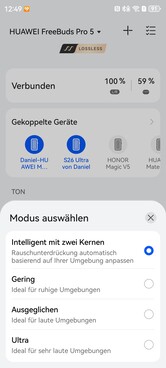 Bununla birlikte, ses kalitesi LDAC ile de mükemmeldir ve özellikle bas ve orta aralıkta gözle görülür şekilde iyileştirilmiştir. Huawei ayrıca, Apple'un AirPods Pro 3 seviyesine tam olarak uymasa da, artık ortam gürültüsünü daha iyi bastıran aktif gürültü engelleme (ANC) özelliğinde de iyileştirmeler yaptı. Şeffaflık modu hem net hem de düşük gürültülüdür ve bir kulaklık çıkarıldığında da etkinleştirilir.
