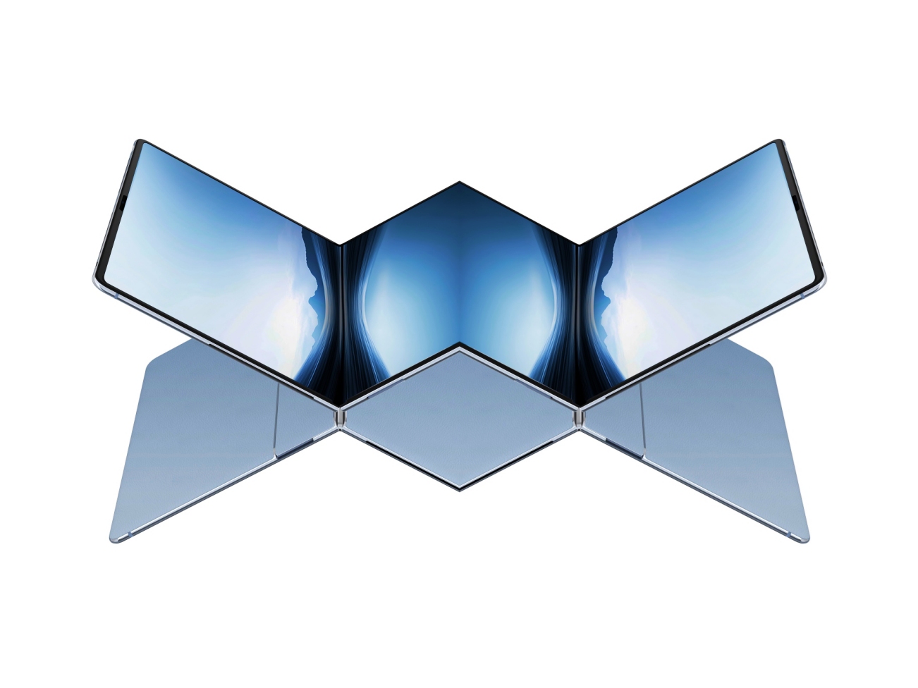 Katlanabilir iPad kulağa tanıdık geliyorsa, bunun nedeni bu tasarımın iPad'in tasarımıyla aynı olmasıdır Huawei MateBook Fold18 inç katlanabilir ekrana sahip (3.400 dolardan başlıyor). Bu doğru Huawei Pura X Max cupertino'nun gelecekte taklit etmeye çalışacağı tek katlanabilir Huawei değil.