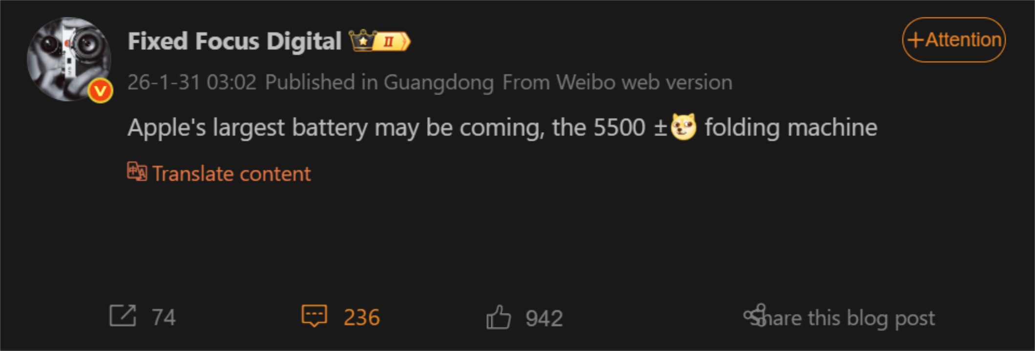 Örneğin, Fixed Focus Digital kısa bir süre önce takipçilerine iPhone Fold'un bugüne kadarki iPhone'lar arasında en büyük pile sahip olacağını bildirdi. Weibo'da yazdıkları yazıda, iPhone Fold'un yaklaşık 5.500 mah pil ile geleceğini iddia ettiler.